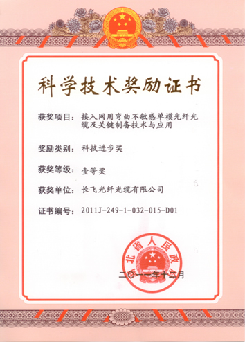 《接入網用彎曲不敏感單模光纖光纜及關鍵制備技術與應用》榮獲2011年度湖北省科技進步獎。本項目在充分利用等離子體氣相沉積(PCVD)工藝沉積效率高和對折射率剖面控制精準的基礎上,從波導結構、材料設計到工藝流程進行了徹底革新,形成了自主知識產權的“PCVD低水峰大棒制備技術”和“大棒高速連續拉絲技術”兩個關鍵技術,解決了管內法難于制造復雜折射率剖面大尺寸預制棒的技術難題,開發出了完全符合接入網用最新G.657標準的下陷包層結構彎曲不敏感單模光纖預制棒和光纖光纜。