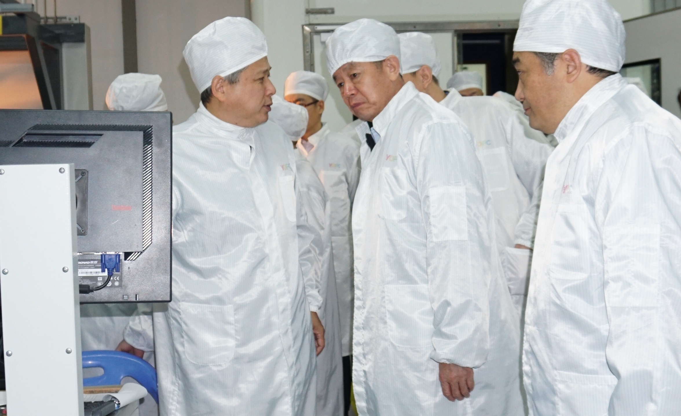 在生產車間,張建國副部長一行調研了長飛公司自主研發(fā)制造的高端生產設備和光纖生產的整個流程,對長飛公司目前不僅能自行研發(fā)生產光纖預制棒、光纖、光纜等系列產品,還可以制造高端生產設備,具備從工藝、技術到設備全套輸出的能力都表示贊賞。