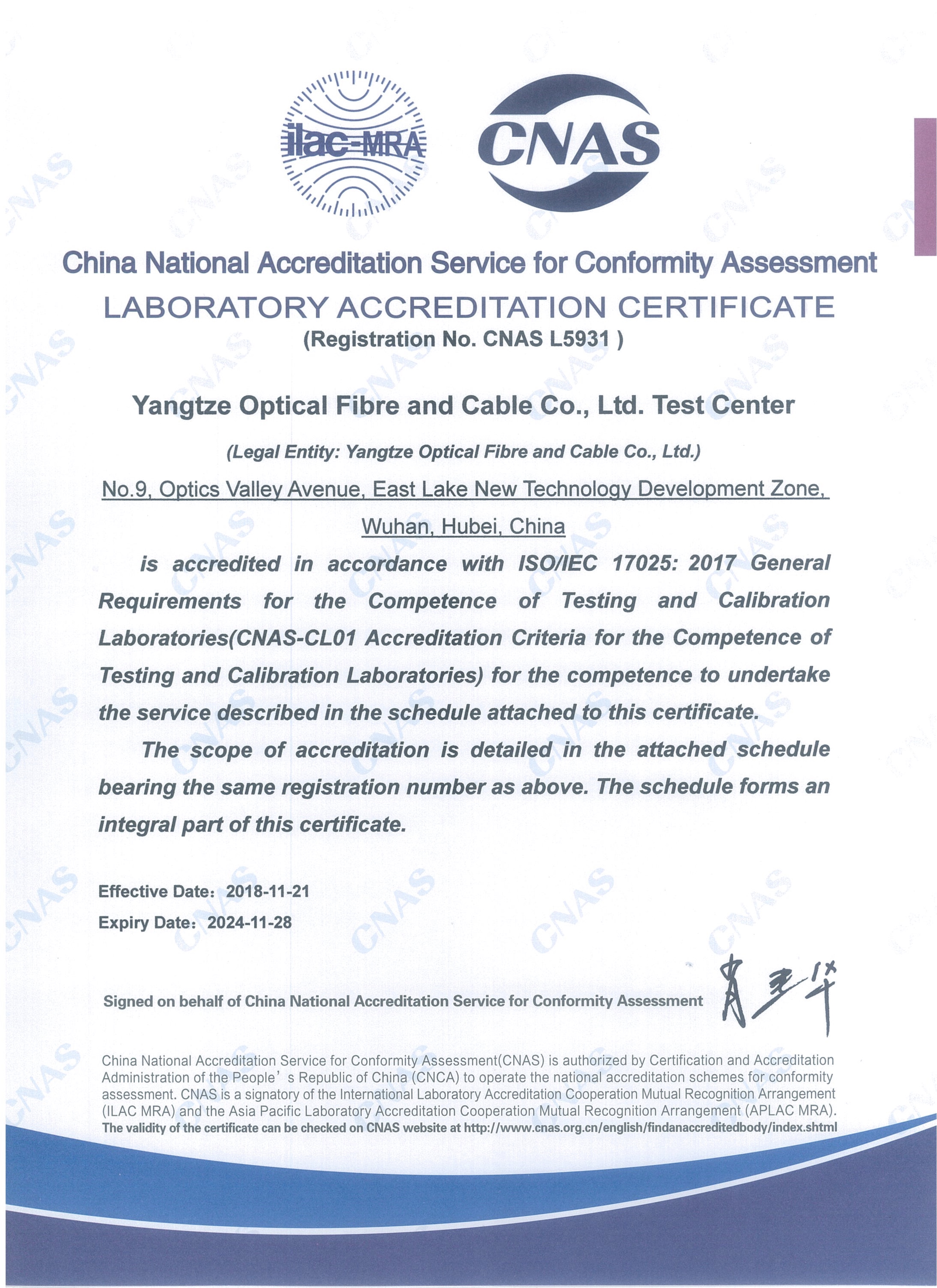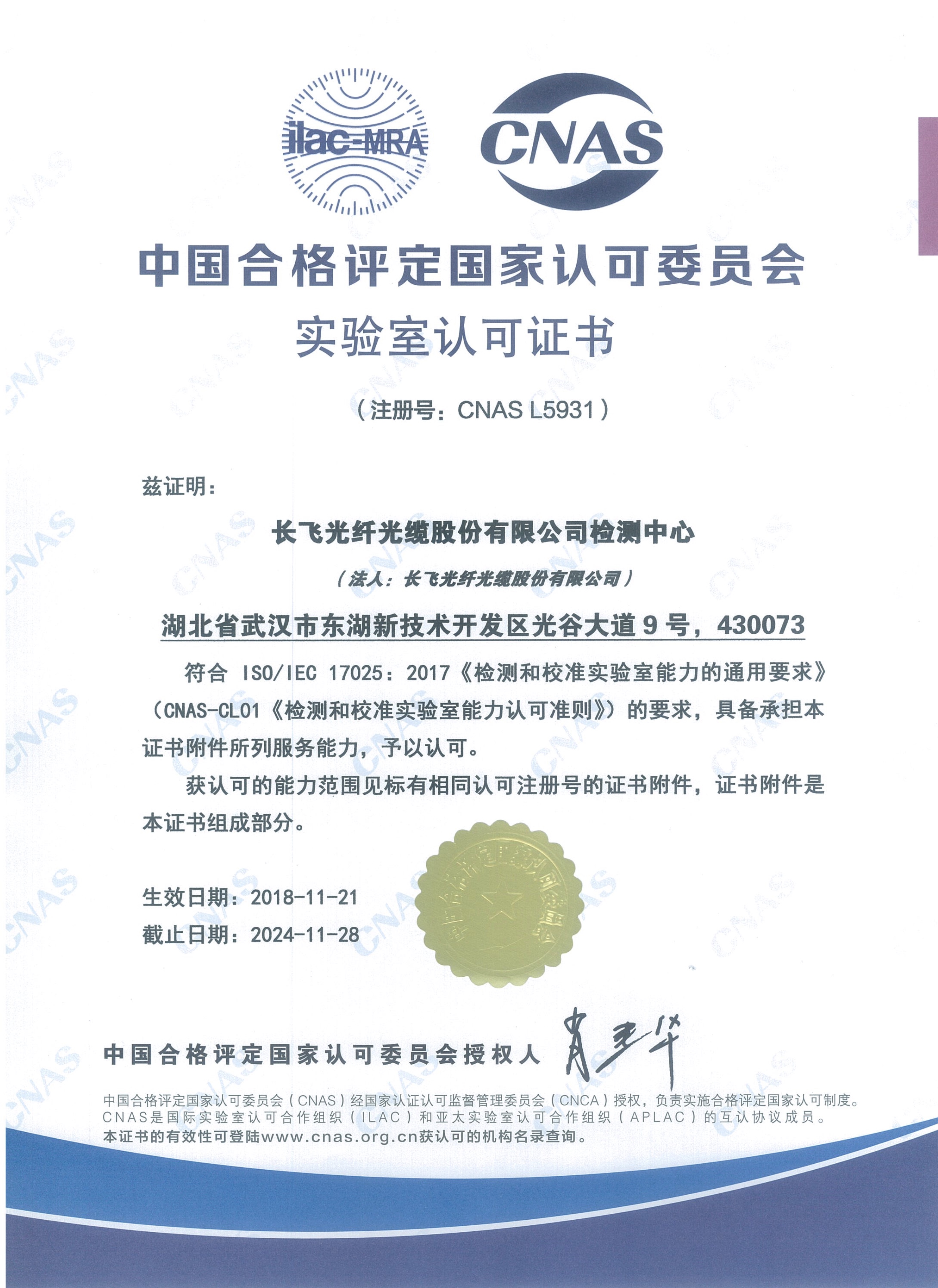 近日,中國合格評定國家認(rèn)可委員會(huì)(CNAS)組織評審專家組成員,對長飛公司檢測實(shí)驗(yàn)室進(jìn)行了實(shí)驗(yàn)室擴(kuò)項(xiàng)換證復(fù)審的現(xiàn)場評審工作。繼2012年首次通過CNAS認(rèn)可后,歷經(jīng)6年的體系運(yùn)行與持續(xù)改進(jìn),在ISO/IEC 17025:2017標(biāo)準(zhǔn)發(fā)布不到一年內(nèi),長飛公司檢測實(shí)驗(yàn)室再次一次性通過CNAS認(rèn)證,并獲新認(rèn)可證書。