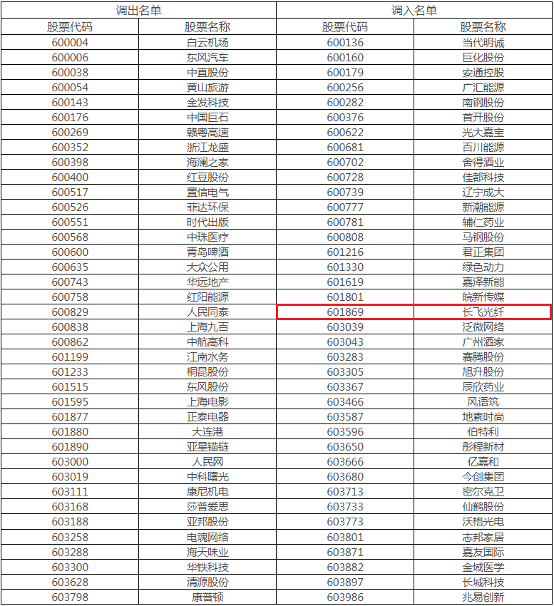 12月3日,上海證券交易所和中證指數有限公司聯合宣布,調整上證50、上證180、上證380等指數樣本股,長飛光纖(股票代碼:601869.SH)入選上證380指數。