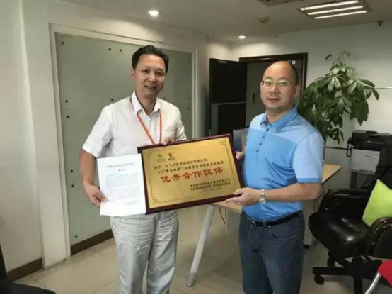 中國移動福建公司采購部總經(jīng)理林志強(右)為長飛公司頒發(fā)獎牌