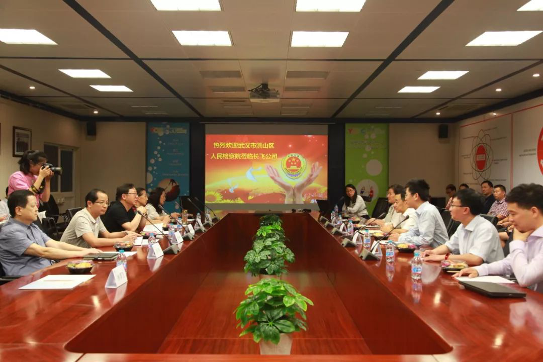 近日,湖北省武漢市洪山區(qū)人民檢察院黨組書記、檢察長(zhǎng)楊屹東率洪山區(qū)人民檢察院全體黨組成員及各業(yè)務(wù)部門骨干蒞臨長(zhǎng)飛光纖光纜股份有限公司(以下簡(jiǎn)稱“長(zhǎng)飛公司”,股票代碼:601869.SH、06869.HK)考察調(diào)研智慧檢務(wù),長(zhǎng)飛公司國(guó)際業(yè)務(wù)與咨詢服務(wù)中心總經(jīng)理聶磊、國(guó)際營(yíng)銷總部經(jīng)理吳玉等出席接待。
