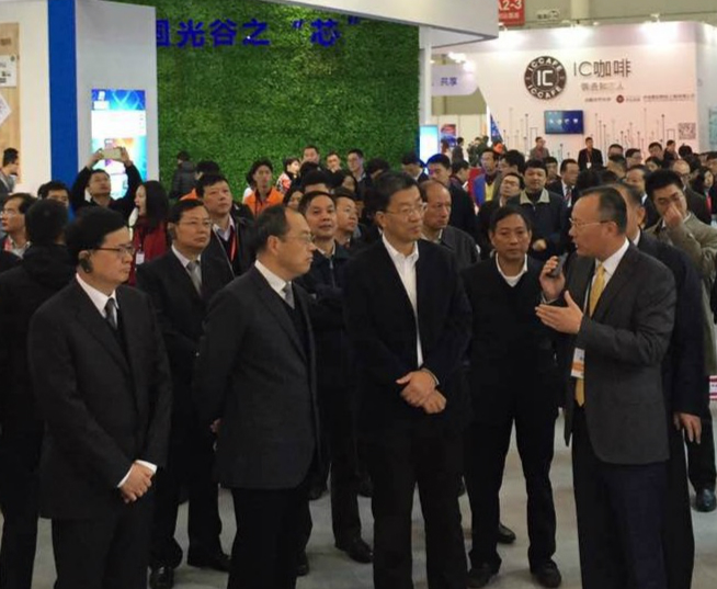 在開幕式后的領導巡展環節,工信部副部長懷進鵬、武漢市市委書記阮成發等領導一行首先就來到了長飛公司展臺,長飛公司制造中心總經理江志康出席接待。江總給來訪領導介紹了長飛公司整體情況以及本次展覽的最新產品,當領導們了解到長飛公司已成為全球第一大光纖預制棒及光纖供貨商和全球第二大光纜供應商時,紛紛表示贊許。同時江總也介紹到,在繼去年與CRU(英國商品研究所)合辦亞太光纖光纜大會基礎上,今年長飛公司再次與CRU攜手合辦首屆世界光纖光纜大會,并預期取得巨大成功。
