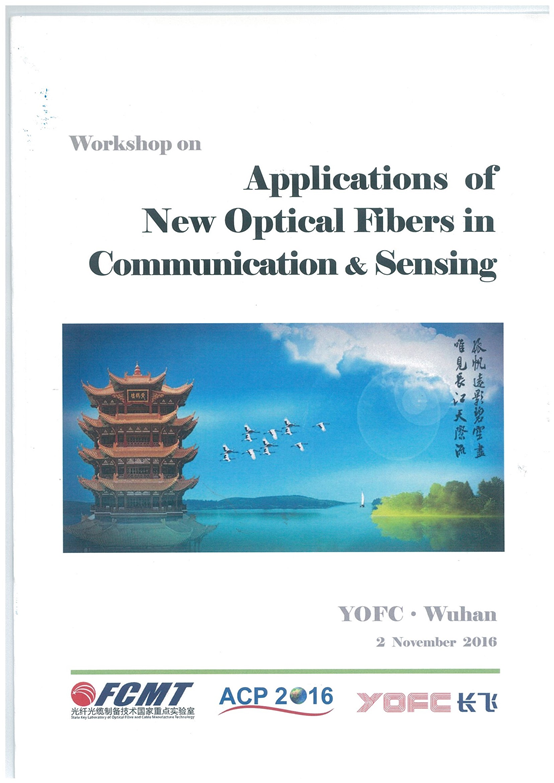 11月2日,在分會場光谷希爾頓大酒店,大會由長飛公司國家重點實驗室舉辦了長飛專題“Applications of New Optical Fibers in Communication and Sensing”的國際學術研討會。會議邀請了來自中國電信、中國聯通、中國信息通信研究院、美國Bell實驗室、韓國、新加坡、香港理工大學和北京郵電大學的8位專家學者作了關于新型及特種光纖在量子通信、長途或短距高速傳輸系統、空分復用、模分復用和光纖傳感等領域的前沿技術研究報告或分析研究報告。ACP2016大會技術主席羅杰教授應邀致開幕辭;大會共同主席、新加坡南洋理工大學Perry Shum教授和長飛國重執行副主任熊良明博士共同主持了學術研討會。該會議是唯一一場由全球光纖光纜企業在ACP2016大會上組織的Workshop。