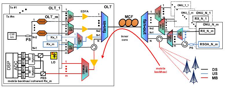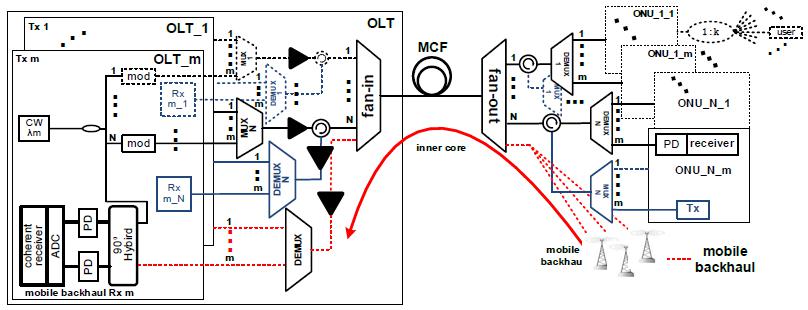 圖5新型波分/空分接入網架構