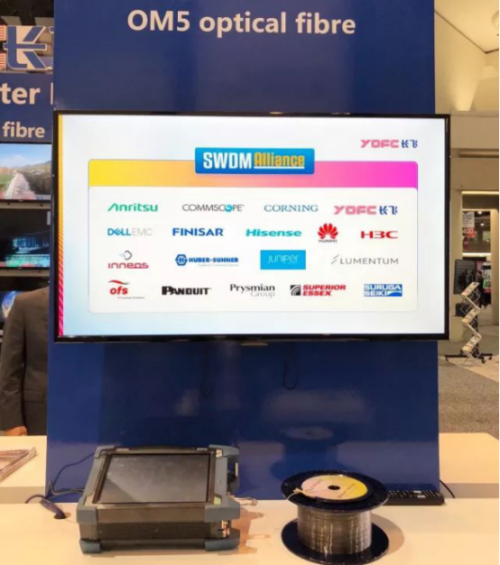 當(dāng)前正處于通信行業(yè)轉(zhuǎn)型升級(jí)的關(guān)鍵時(shí)期,網(wǎng)絡(luò)發(fā)展對(duì)光纖技術(shù)提出了新的要求,長(zhǎng)飛公司未雨綢繆,在幾年前就啟動(dòng)了下一代通信光纖的研發(fā),本次展會(huì),長(zhǎng)飛公司展出了在通信光纖領(lǐng)域的新成果:遠(yuǎn)貝®超強(qiáng)超低衰減大有效面積光纖和超貝®寬帶OM5彎曲不敏感多模光纖。對(duì)于400G系統(tǒng),采用超低損耗大有效面積G.654光纖,總體傳輸性能可以提升3dB,能有效延長(zhǎng)系統(tǒng)無(wú)電中繼傳輸距離,減少電中繼站數(shù)量,這種新型光纖將會(huì)是骨干網(wǎng)絡(luò)長(zhǎng)距離傳輸?shù)淖罴堰x擇。長(zhǎng)飛超貝®寬帶OM5彎曲不敏感多模光纖是為短波長(zhǎng)的波分復(fù)用設(shè)計(jì)的,在850-950nm波長(zhǎng)內(nèi)都具有高寬帶,為未來100Gb/s和400Gb/s多波長(zhǎng)多模系統(tǒng)提供了光纖解決方案。