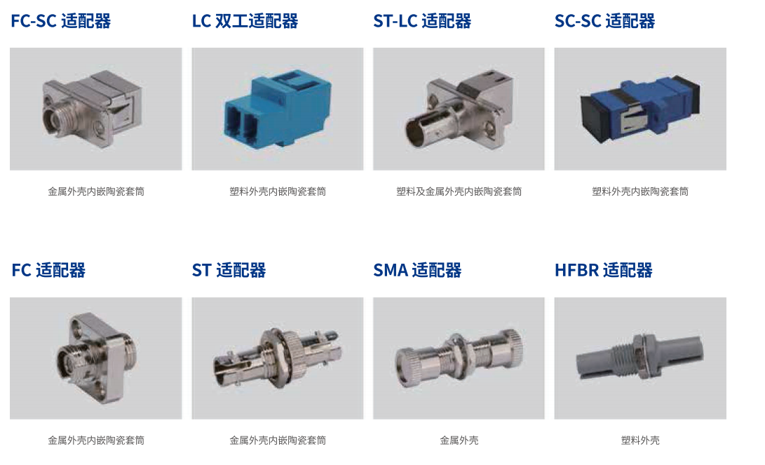 長(zhǎng)飛公司可提供全系列工控適配器,適配器兩端可插入不同接口類(lèi)型的光纖連接器, 實(shí)現(xiàn)FC、SC、ST、LC、E2000 等不同接口間的轉(zhuǎn)換,性能良好, 穩(wěn)定可靠,滿(mǎn)足各種應(yīng)用需求。