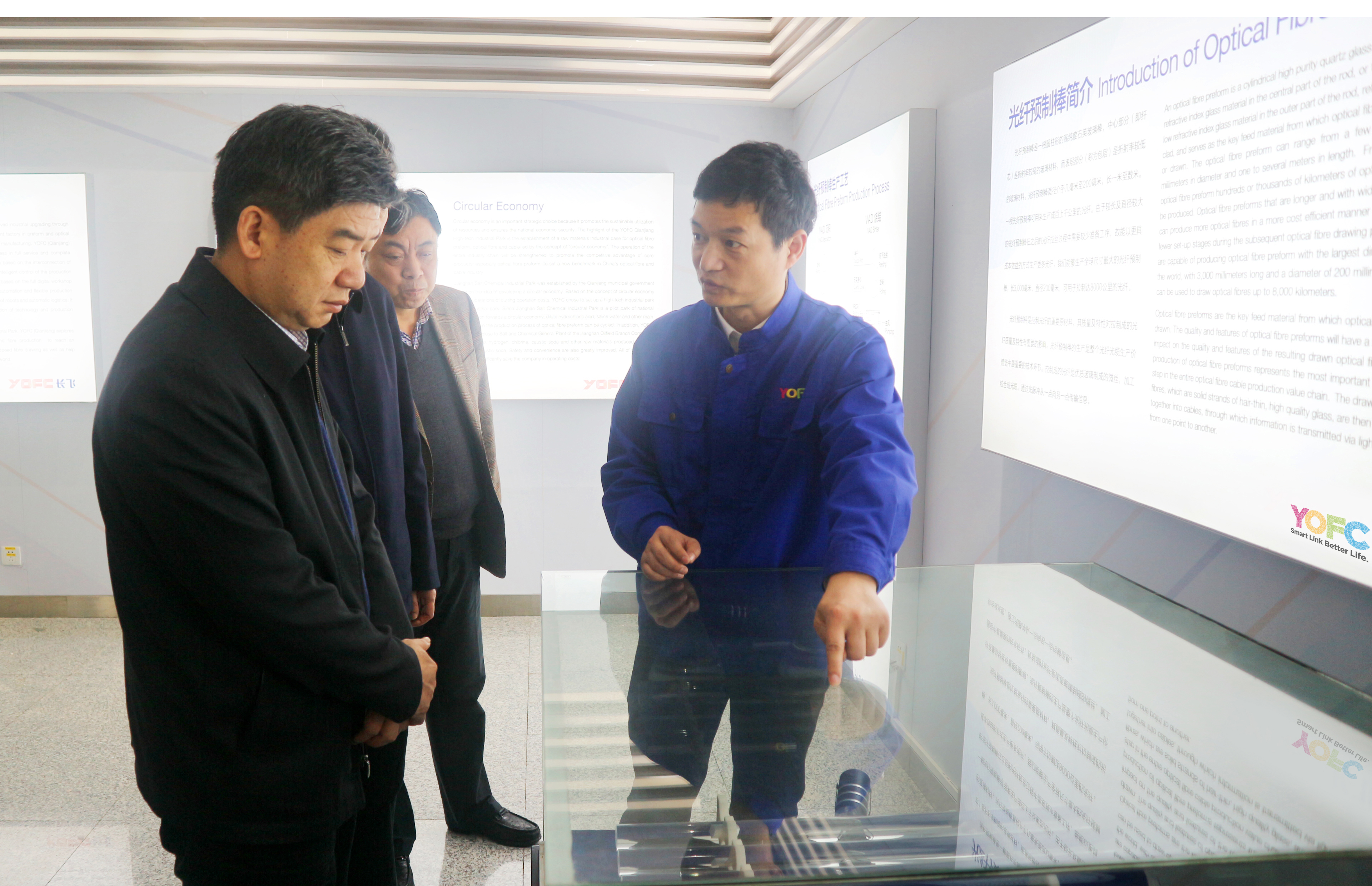 在長飛光纖潛江公司展廳,錢新偉介紹了長飛公司及長飛光纖潛江公司近年來的發(fā)展現(xiàn)狀。長飛公司堅(jiān)持創(chuàng)新驅(qū)動(dòng)發(fā)展,已建成了全球首個(gè)預(yù)制棒和光纖智能制造工廠,目前,長飛光纖潛江公司已連續(xù)完成兩期投產(chǎn)。傅主任詢問了長飛光纖潛江公司投產(chǎn)情況,對(duì)公司取得的成績給予了高度認(rèn)可,并重點(diǎn)查看了車間里的設(shè)備安裝和調(diào)試狀況,寄語公司加大創(chuàng)新力度,夯實(shí)產(chǎn)業(yè)基礎(chǔ),帶動(dòng)地方經(jīng)濟(jì)發(fā)展。