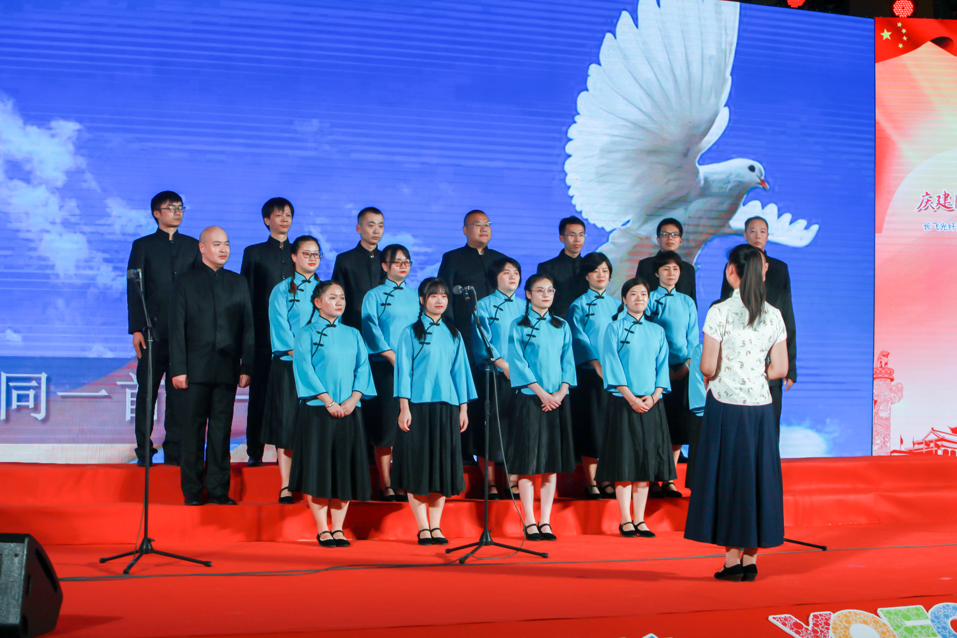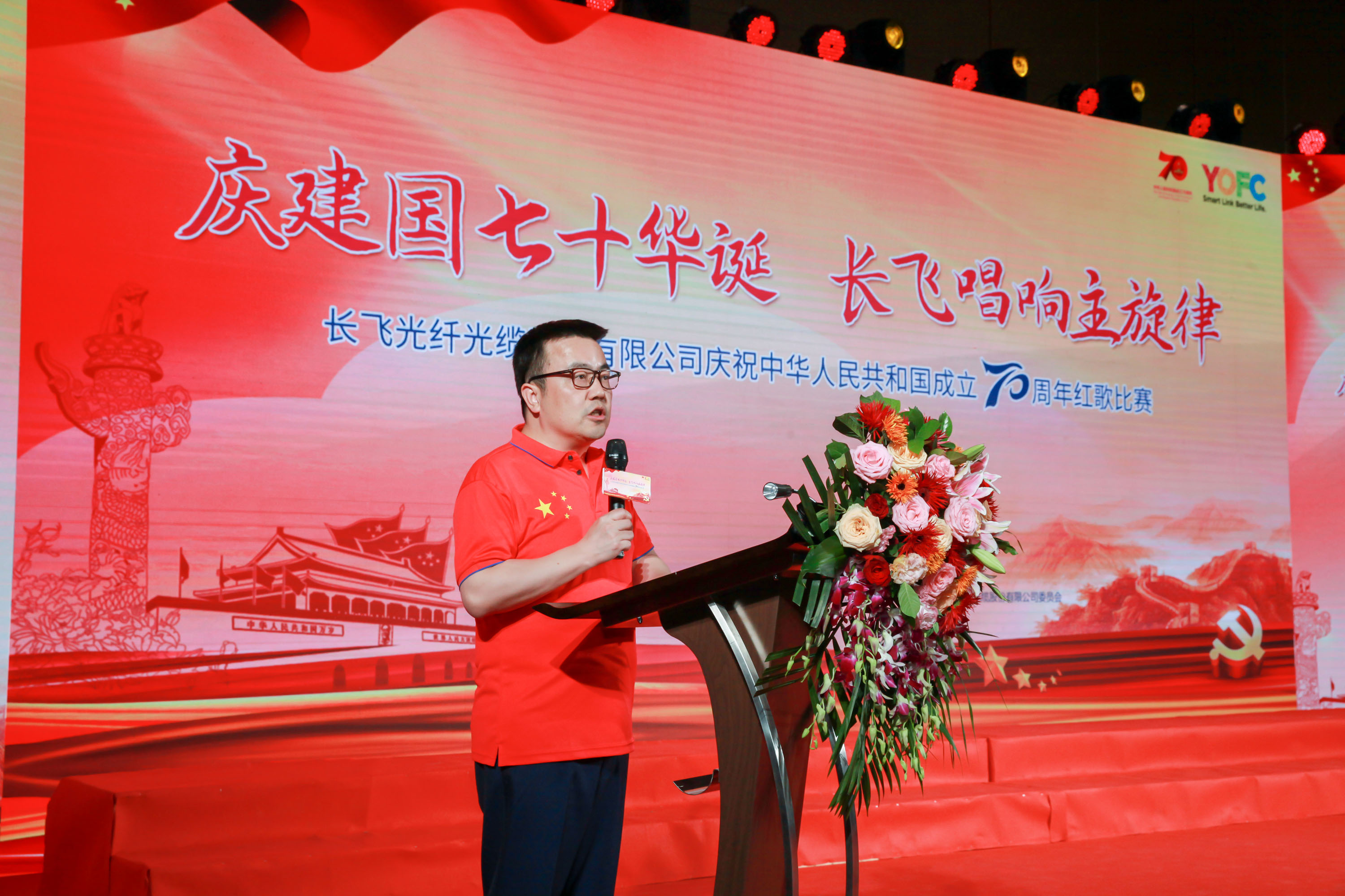 70年砥礪前行,盡書奮進華彩,70年春華秋實,盡顯精彩樂章。長飛公司共300余名員工及其家屬歡聚一堂,以飽滿的激情縱情歡唱,共祝祖國七十華誕。