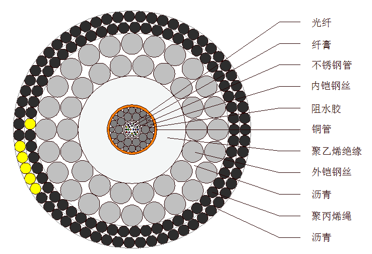 該光纜適用于在敷設、埋設、回收、運行時具有雙層鎧裝防護的淺海中特定區域 |