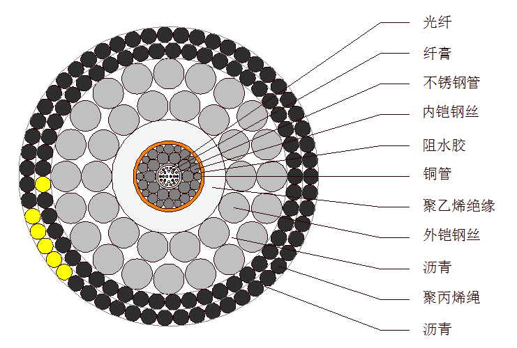 該光纜適用于在敷設(shè)、埋設(shè)、回收、運(yùn)行時具有雙層鎧裝防護(hù)的淺海中特定區(qū)域 |