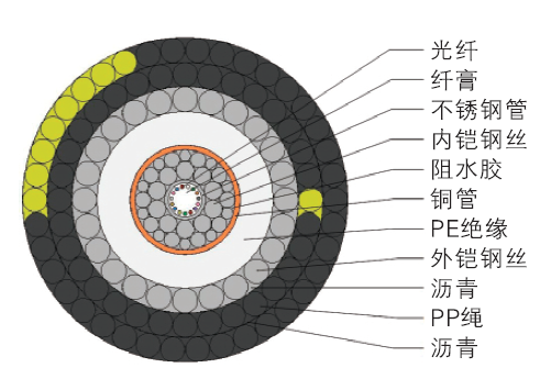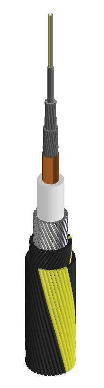 帶有單層鎧裝防護的輕型光纜,該光纜適用于在敷設、回收、運行時要求提升一定抗拉性能的特定區域 |
