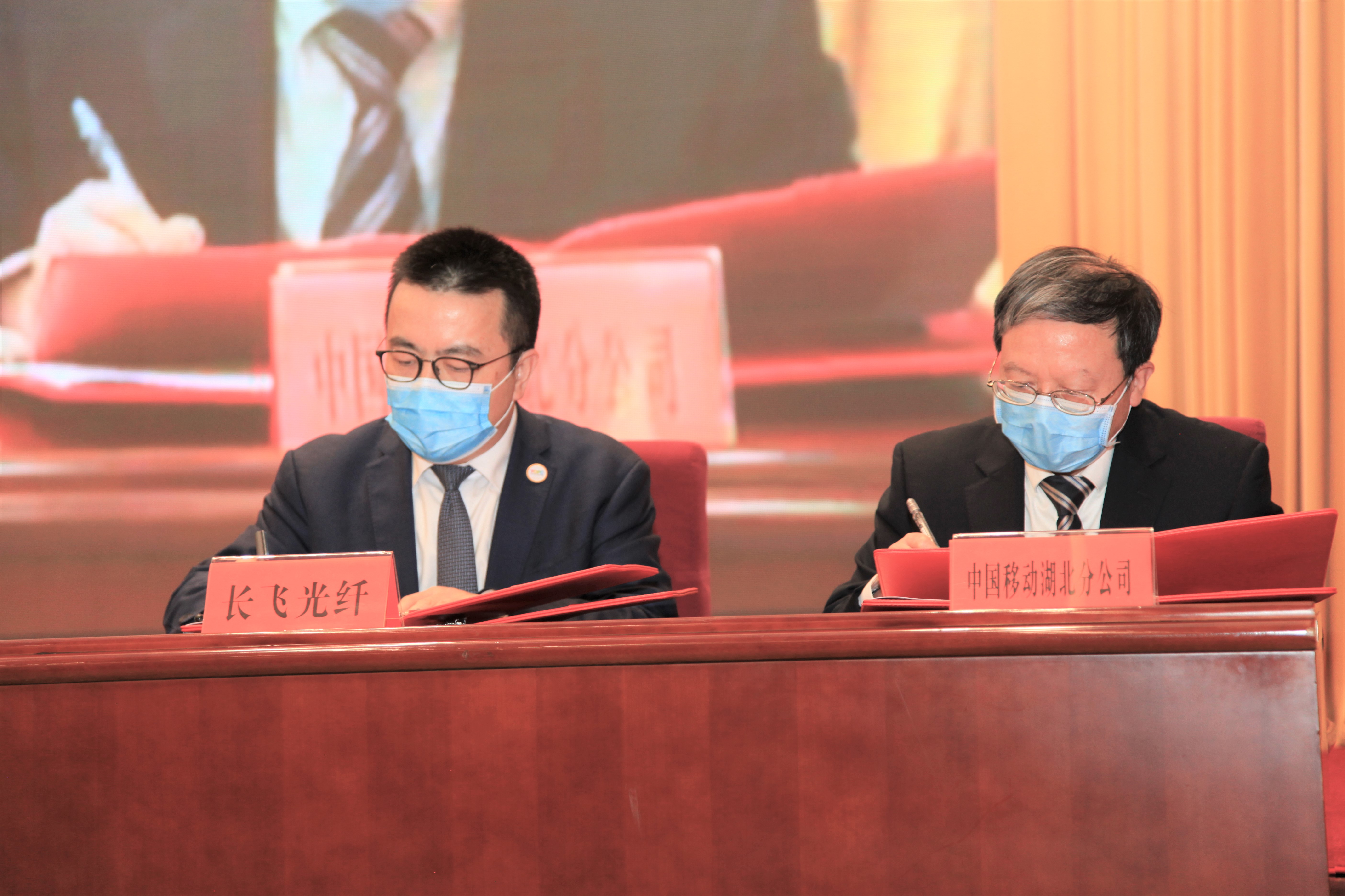 現(xiàn)場,莊丹與中國移動通信集團(tuán)湖北有限公司(以下簡稱“湖北移動”)副總經(jīng)理方樹垠簽署5G用光纖光纜產(chǎn)品合作協(xié)議。