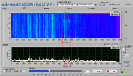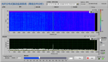 視頻聯動報警完成現場光纜鋪設后,進行防區標定及設備安裝調試,即將光纜長度與實際物理長度相對應以進行防區設置,同時根據不同位置光纜振動靈敏度的不同進行防區振動閾值的配置。系統可在軟件層面進行防區配置,具備極大靈活性,后期可根據光纜長度的改變進行防區的修改,同時可以靈活配置防區振動報警閾值,并可以通過時域上振動持續時間及空間上的振動范圍調整報警策略。設備安裝在監控機房中,由監控室到防區起點位置埋設約400米通信光纜,機房安裝設備包括分布式振動探測主機一臺、48路繼電器聯動模塊兩臺,分布式振動探測主機進行振動信號的處理、分析和報警信息存儲,聯動模塊將振動報警信號轉換為開關量信號輸出給視頻報警主機,進行視頻聯動。