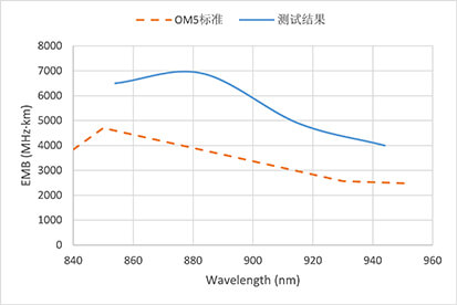 準(zhǔn)單模傳輸是將大部分能量能夠注入到多模光纖的基模中,并在較長的距離能保持準(zhǔn)單模的傳輸狀態(tài),使多模光纖能夠?qū)崿F(xiàn)單模光纖的傳輸性能。單多模通用型光纖的芯層采用拋物線型折射率分布,受益于長飛PCVD技術(shù),能夠?qū)崿F(xiàn)850nm至950nm波段優(yōu)異的帶寬性能,滿足OM5的帶寬要求,在短距離傳輸中具有低成本、低功耗的優(yōu)勢(shì);同時(shí)采用抗彎的結(jié)構(gòu)設(shè)計(jì),具有優(yōu)異的彎曲不敏感性能。