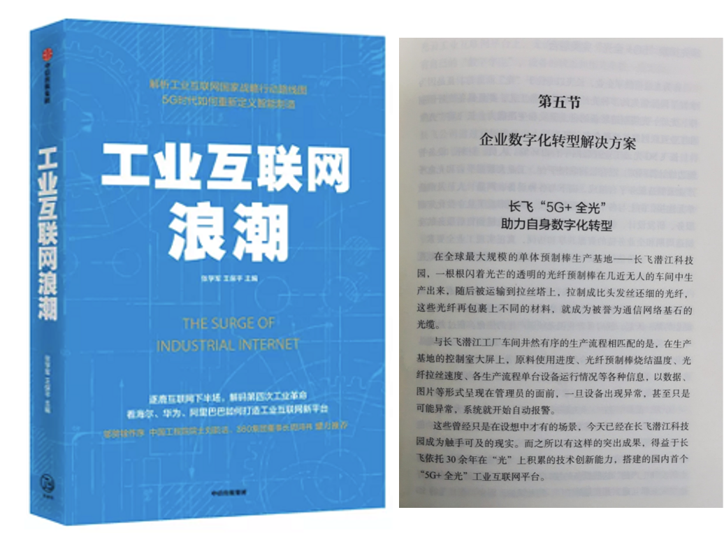 工信部指導的《工業互聯網浪潮》一書出版,將長飛公司的“5G+全光網絡解決方案”作為重點案例向全國推廣。