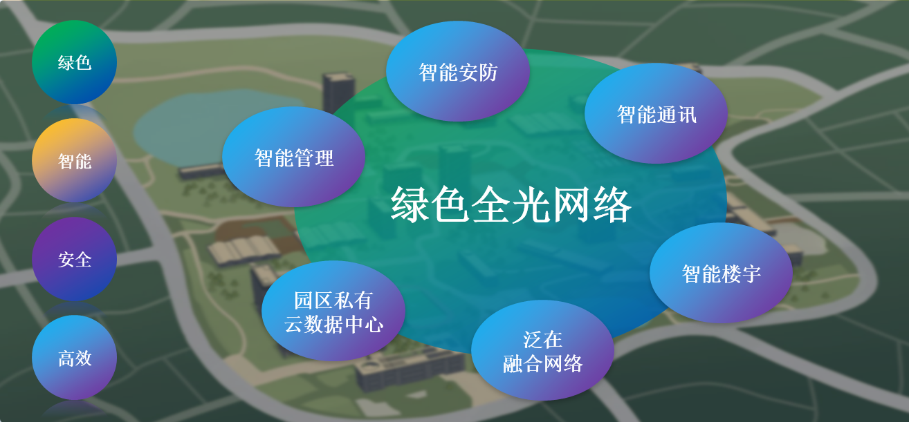 園區作為城市的基礎單元、經濟的主要承載平臺和人類活動的主要場所,連接了個體、家庭、社會、國家。長飛智慧園區方案將園區逐步打造成為物理世界、人文世界和數字世界三位一體的空間綜合體,是實現智能城市與智能社會的基礎。