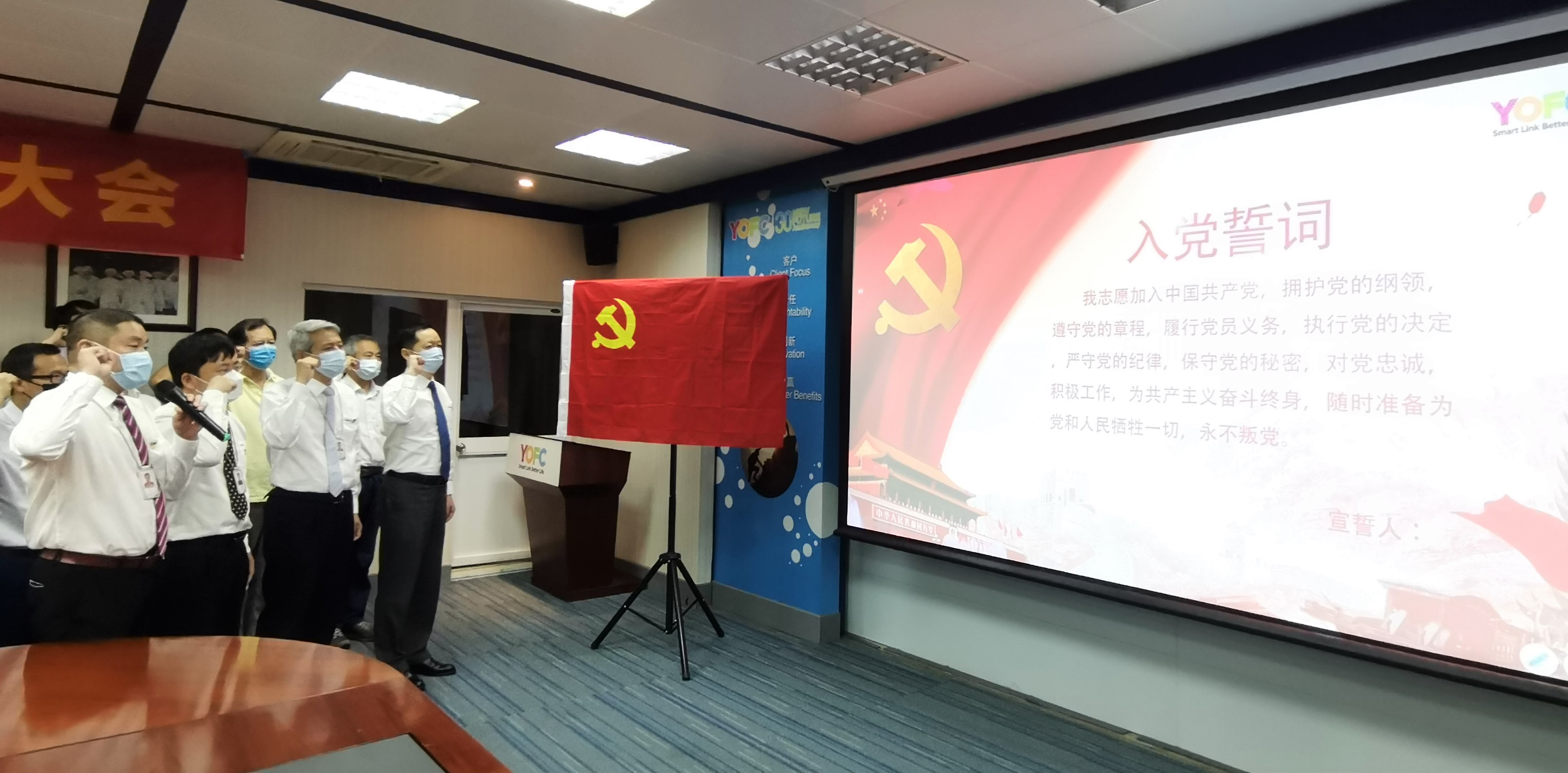 洪亮而莊嚴的國歌拉開了此次紀念大會的序幕,在公司黨委委員、工會副主席王磊同志的領誓下,全體黨員重溫了入黨誓詞,永記初心。