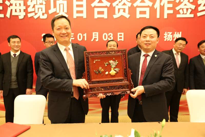 2018年1月3日,長飛光纖光纜股份有限公司(以下簡稱“長飛公司”,股票代碼:6869.HK)與寶勝科技創新股份有限公司(以下簡稱“寶勝股份”,股票代碼:600973.SH)在美麗的瘦西湖畔揚州迎賓館簽署了海纜項目合資協議。揚州市市委書記謝正義,市委常委、常務副市長陳楊,市經濟技術開發區黨工委書記蔣愛祥,市經濟技術開發區管委會主任陳曦等領導親臨會場祝賀,寶勝集團董事長楊澤元,副總裁梁文旭,寶勝股份副總裁夏成軍、陳大勇,長飛公司董事長馬杰,副總裁兼董事會秘書周理晶,財務總監梁冠寧,戰略與市場部經理周欽敏等出席了簽約儀式。