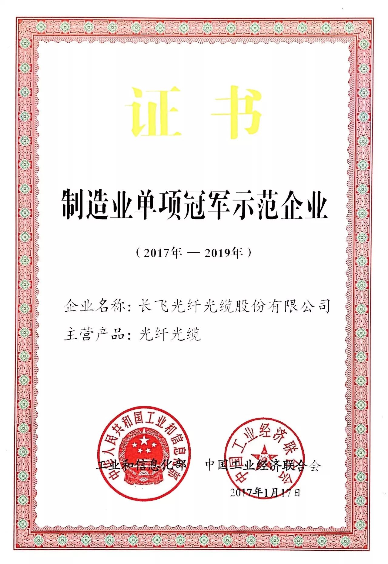 國家工信部于2017年1月17日正式公布了第一批“制造業單項冠軍示范企業名單”,長飛光纖光纜股份有限公司(以下簡稱“長飛公司”,股票代碼:6869.HK)成功入選,成為全國首批制造業單項冠軍企業之一!