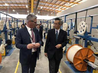調研團隊參觀了長飛非洲公司以先進理念打造的光纜生產車間,調研了針對南非當地技術條件所引進的最先進的光纜生產設備和生產技術,對長飛非洲公司能夠在短期內建成投產給予了高度評價。林大使也對公司團隊高度本地化表示贊賞,并對長飛非洲公司未來的成長充滿信心。